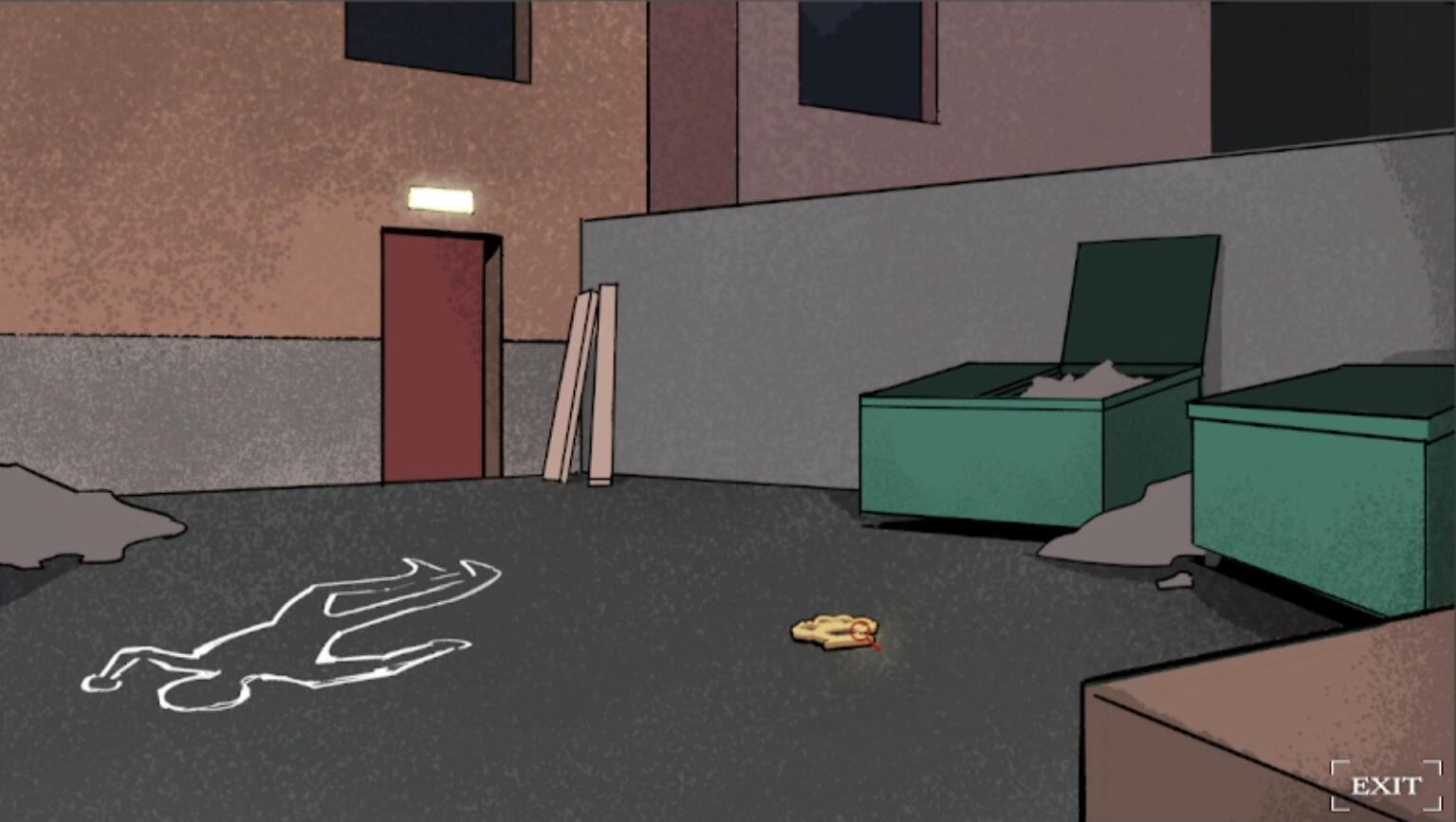 This mechanic proved to be more complicated than it first appeared. To provide clear player feedback, each object required a collider that matched its shape rather than a simple box collider, preventing confusion when clicking on areas like the concrete floor. To avoid players mistaking previously discovered objects for new evidence, a distinct “found” cursor icon also needed to be implemented. Additionally, it was important to prevent players from clicking through text scenes and accidentally interacting with evidence in the background. This issue surfaced during playtesting and became a memorable, if entertaining, bug to resolve.