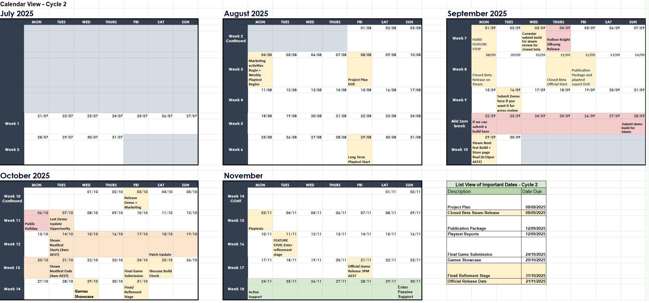Created and managed the overall production timeline, project management documents (Including Game Design Document), communication structure and Standard Operating Procedures.